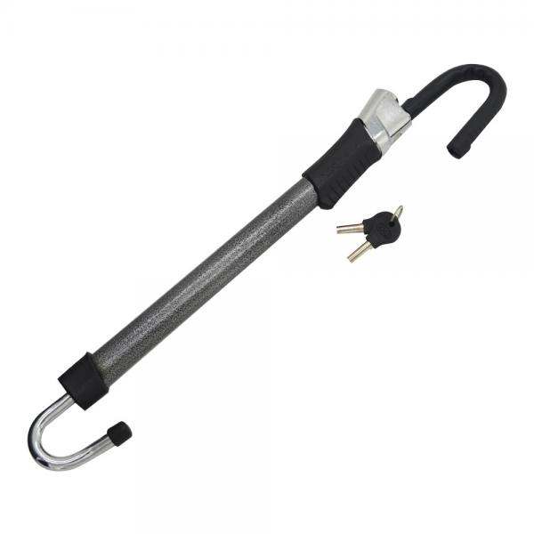 Область применения: Замок используется как противоугонное устройство для автомобилей с любой коробкой передач. Принцип действия - блокирует и предотвращает нажатие педали тормоза и поворота рулевого колеса. Легко устанавливается и снимается. Механизм замка обеспечивает 1.000.000 неповторяющихся комбинаций, что исключает возможность подбора ключа.